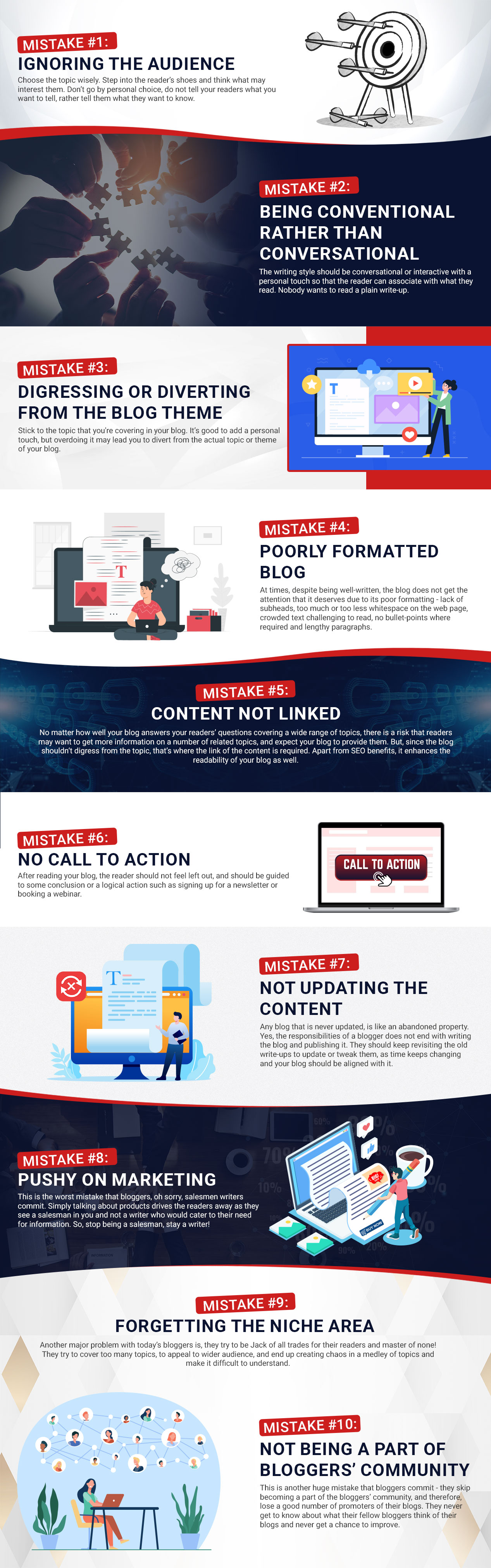 According to an old saying, wise people learn from the mistakes of others. Therefore, when you create content for your blog, remember to steer clear of the above mentioned ten very common but deadly blogging mistakes.